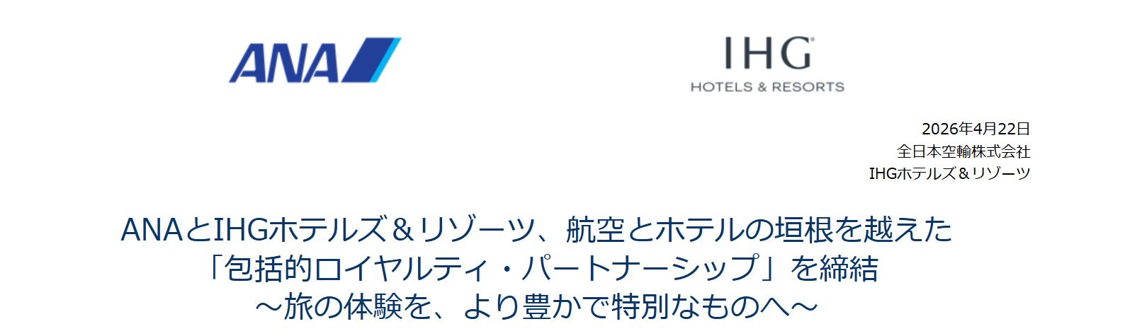 ANAとIHGは元々関りが強いですが、この度、新たなパートナーシップを締結しました。ANA修行僧にとっては朗報です。ANA派にもっと泊まって欲しいIHGと、2026年度以降ももっと乗って欲しいANAの思惑が合致した形ですが、値上げやサーチャージ爆上げで修行層が激減している中での施策なので良いかなと。