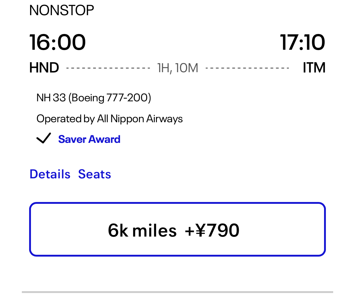 羽田伊丹は6,000マイル、羽田福岡は7,000マイルです。1年前、5,000マイルだったことを考えるととお得度はかなり下がっています。
