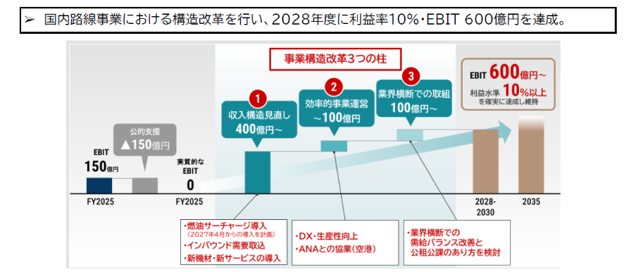 新しく設定されたJAL経営ビジョンの中で国内線事業の立て直しのため、2027年4月からの燃油サーチャージ導入を計画しています。国際線は儲かっているけど、国内線は苦しい状況が続いている、と言うのが前提です。2025年度の国内線売上が約6,000億円、利益が150憶円と言うことで収益構造見直しによる目標の400億円には250億の上乗せが必要。250憶円は国内線売上の約4%になります。決算資料より国内線の単価(旅客収入/有償旅客数)が16,000円弱なので単純計算で4%は640円になります。一律640円の上乗せをすると不公平感が出てくるので羽田那覇なら1,000円、離島は200円とか、距離数によって変えてくるのではと予想します。何れにしても痛いですね、、、仕方ないとは言え。https://press.jal.co.jp/ja/release/202603/009313.html