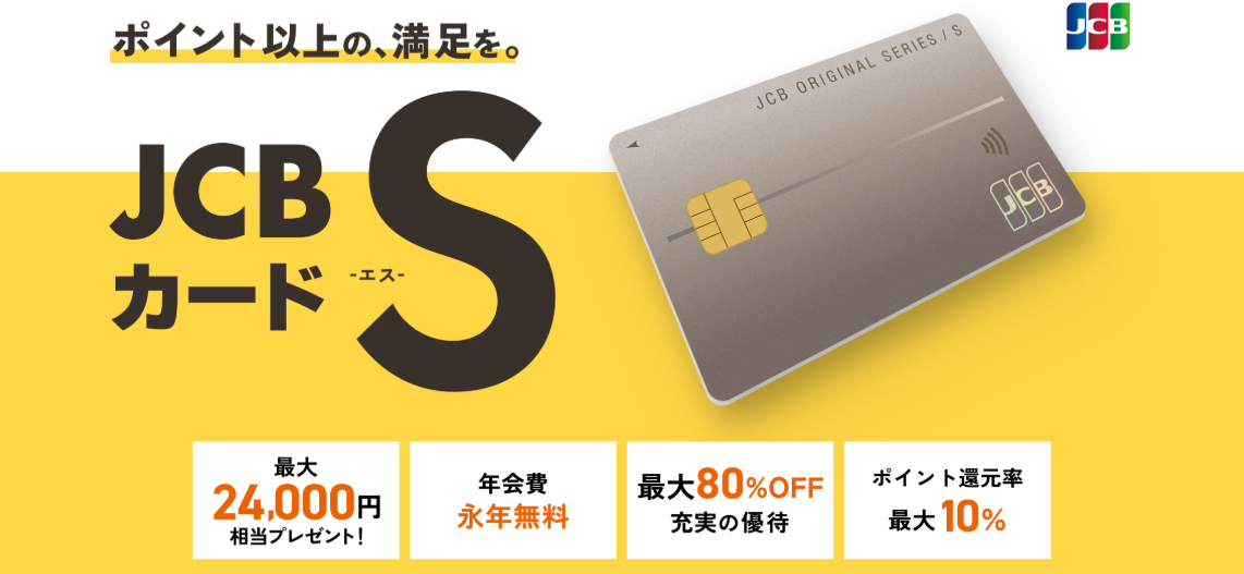 JCBオリジナルシリーズのJCB Sカードがモッピーで14,000ポイントの高還元!3月3日までなのでお早目に!年会費が永年無料は嬉しい。2026年1月に誕生したJCBのJポイントが最大10%還元、パートナー店の利用で最大20%還元、使えば使うほどお得なシステムあり(例えば50万利用で1,000ポイントとか)、持ってて損はないJCBシリーズです。尚、注意書きとして過去にJCBオリジナルシリーズ(JCB W、JCBゴールド、プラチナ)に入会している場合は対象外になる可能性があるとのこと。