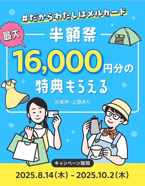 - メルカードのキャンペーンで最大16,000ポイント