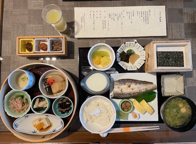 朝食はヒルトンゴールド会員は無料です。4階で洋食、5階で和食です。和食の気分だったので5階へ。地場の食材を使った数々、美味しくいただきました。
